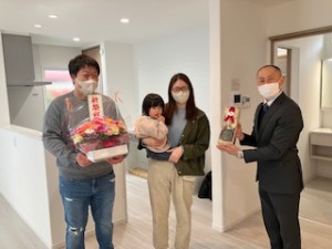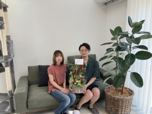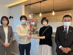 まずは、営業担当の古澤支店長からご夫妻にお花のプレゼント。