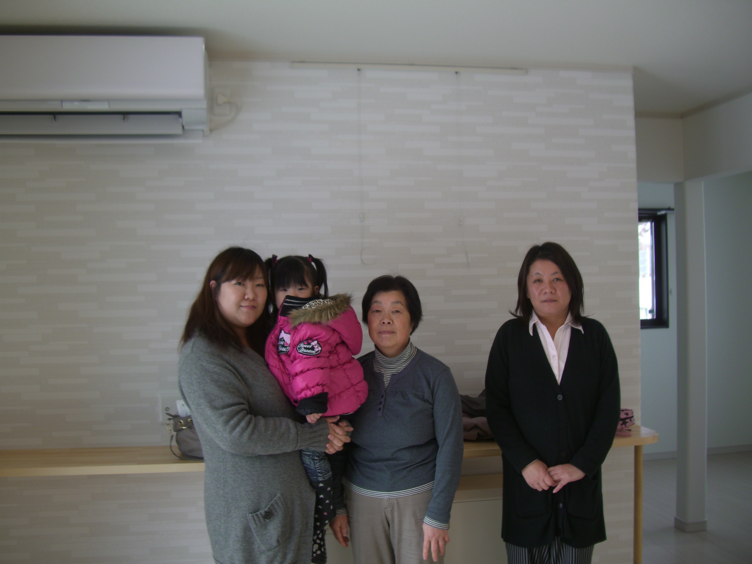 写真は、奥さまと元気なお嬢ちゃんとお母様です。そして、弊社の加藤さんです。