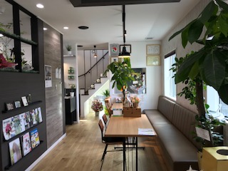 新社屋は2階キッチンと吹き抜けが繋がる体験型ショールーム兼事務所です。