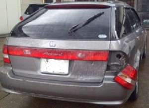 強風でシャッターが壊れ、一晩中私の車に接触した模様。
